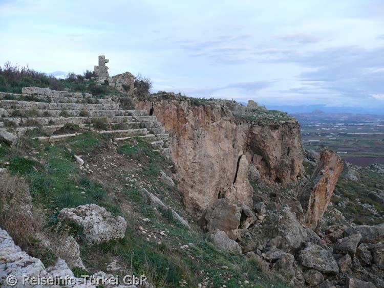 (Nach einem Erdbeben 1969 stürzte die orchestra, das Bühnenhaus sowie das daneben liegende Odeon  in die Tiefe)