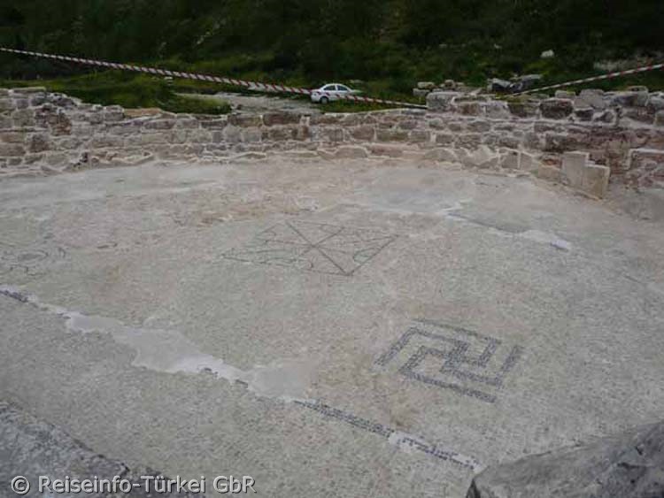 (Mosaik am Boden der Brunnenanlage, die sich zwischen