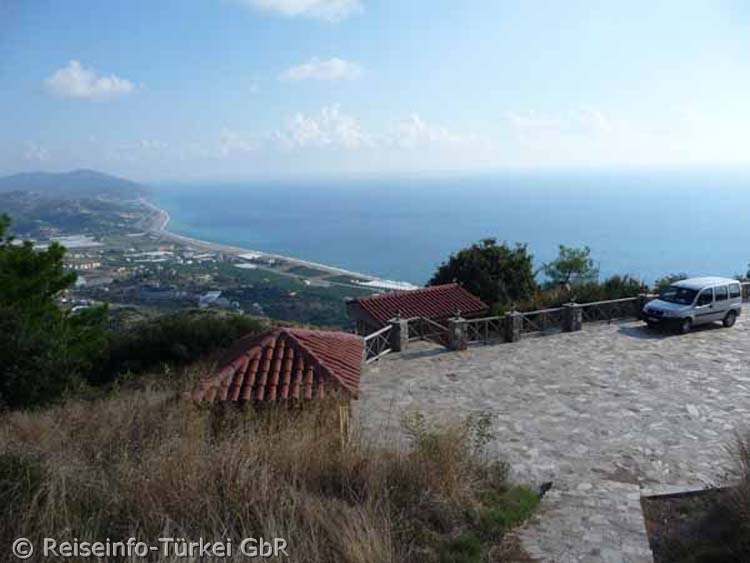 Die Parkplattform mit Kassen- und Toilettenhäuschen (unten)