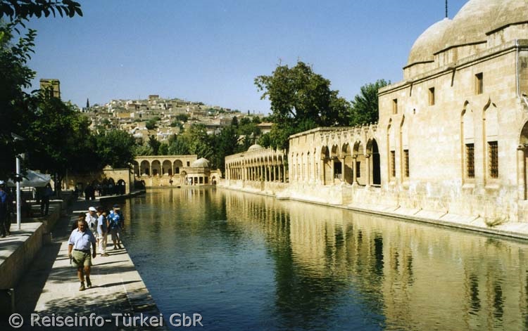 Der Teich des Abraham mit heiligen Karpfen an der Halil-Rahman-Moschee