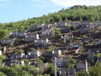Das "verlassene" Dorf Kayaköy liegt 6 km südlich von Fethiye. Nach Kalkan sind es 65 km. Bis Antalya sind auf der D350 durch die Berge 195 km, auf der D400 an der Küste entlang 255 km.