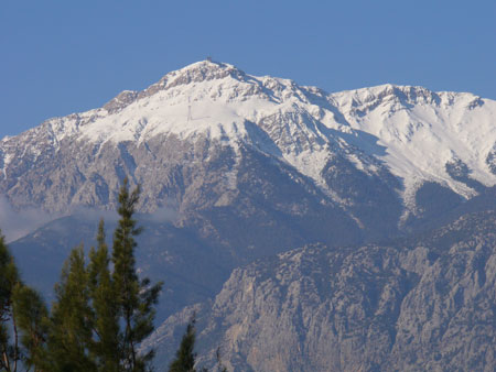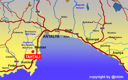 Der 2365 m hohe Tahtali beherrscht die Landschaft rund um Kemer. Zwischen Antalya und der Bucht von Finike kann man ihn als dominierenden Gipfel des Gebirgszugs Bay Dalağı (türk. Herren Berge) sehen. Seine unmittelbare Nähe zur Küste des Mittelmeeres macht ihn für Seefahrer weit sichtbar. Er ist der höchste Berg im Naturpark Olimpos-Beydağlary-Milli-Park. Von November bis oft in den Juni hinein ist der Gipfel mit Eis und Schnee bedeckt. Im Frühjahr wird diese Schneeschicht oft durch heranwehende feinstaubige Saharawinde rötlichbraun eingefärbt, während er im Sommer wegen der Wolken, die den Gipfel verdecken, häufig nicht zu sehen ist. Die vegetationsfreie Zone beginnt in etwa 1900 Meter Höhe.